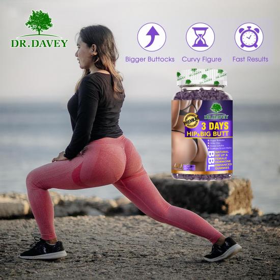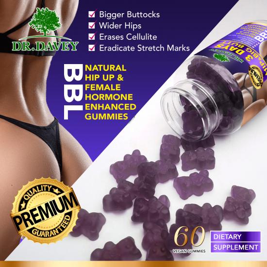 These DR.DAVEY gummies (60 per bottle) are marketed as a "3-day" BBL-inspired supplement for hip and butt enhancement. They claim to enlarge buttocks, widen hips, reduce cellulite, and fade stretch marks—while boosting female hormones for natural curve transformation. Positioned to deliver fast results, the formula aims to lift, tone, and reshape the lower body for a curvier figure, alongside smoother skin.