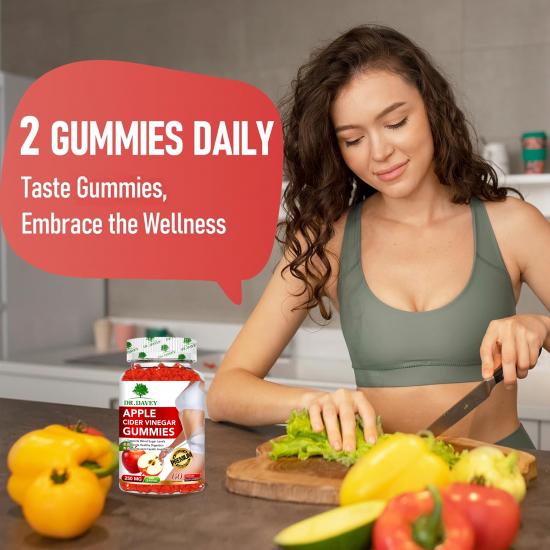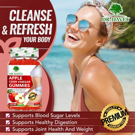 These DR.DAVEY gummies deliver 250mg of apple cider vinegar per serving (60 gummies total) as a dietary supplement. Formulated to support multiple wellness goals, they help regulate blood sugar, promote healthy digestion, support joint health, and assist with weight management. Additional benefits include detoxing the body, boosting metabolism/vitality, and enhancing skin/hair health—all with a delicious, natural taste. The recommended daily intake is 2 gummies, making it a convenient addition to a wellness routine.