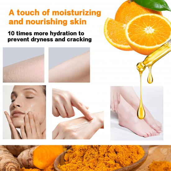 Roushun Turmeric & Vitamin C Glow Body Oil: A nourishing body oil with turmeric and Vitamin C, delivering 10x hydration to fix dry, cracked skin (including foot wrinkles). It brightens dull complexions, tightens skin for a translucent look, with visible improvements in 7 days. Leaves skin moisturized and radiant.