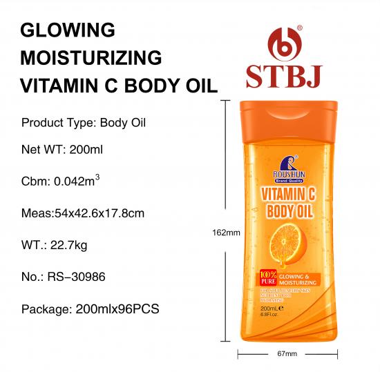 This Glowing Moisturizing Vitamin C Body Oil is formulated with premium Vitamin C to deliver dual benefits of intense hydration and natural glow. Its lightweight, fast-absorbing oil texture penetrates deeply without leaving a greasy residue, nourishing dry skin while targeting dullness and uneven tone. Ideal for daily use, it replenishes moisture, strengthens the skin barrier, and enhances a luminous, healthy complexion—leaving your body feeling soft, smooth, and radiant all day long. A must-have for anyone seeking a hydrating body oil that boosts glow and improves skin texture.