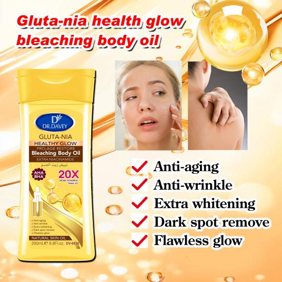 Formulated with gluta-nia, extra niacinamide, AHA and BHA, this 20X powerful body oil delivers multi-benefits: it fights aging, reduces wrinkles, brightens skin, removes dark spots, and prevents stretch marks (proven effective for prenatal care). A single drop moisturizes, tightens, and leaves skin with a flawless, glowing complexion.