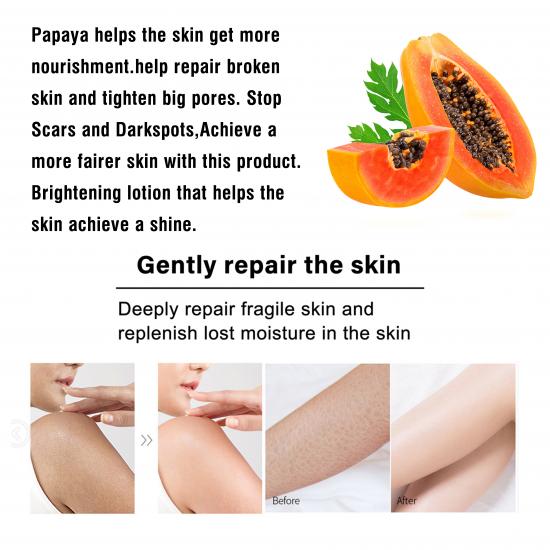Papaya Body Lotion leverages the nourishing power of papaya extract to revitalize dull skin, enhances skin radiance while softening rough areas, delivers gentle and long-lasting hydration without stickiness, improves skin texture for a silky finish, offers OEM/ODM and low MOQ wholesale, an ideal pick for those pursuing natural and healthy body care.
