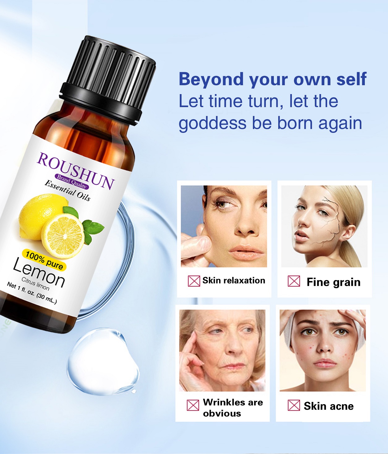 Roushun Essential Lemon Oil Increases skin resistance, leaving skin with a natural glow Say goodbye to the dark spots Dry and loose skin try our Essential Lemon Oil